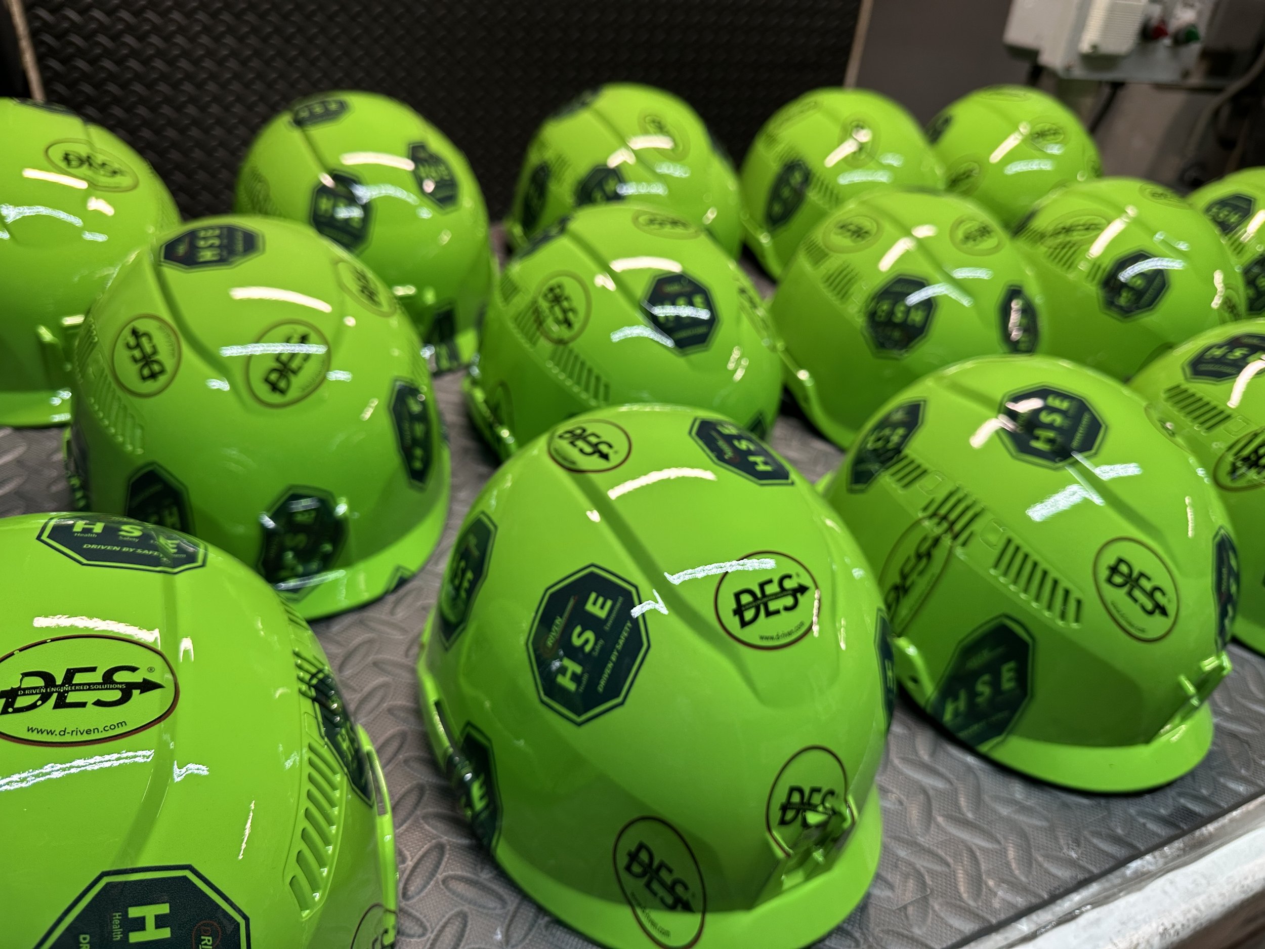 Our latest bulk project was 65 hard hats customized for D-Riven Engineered Solutions in Canton Township, MI. We created a custom film featuring their logos to ensure each piece perfectly represented their brand.